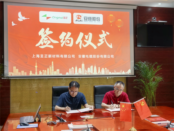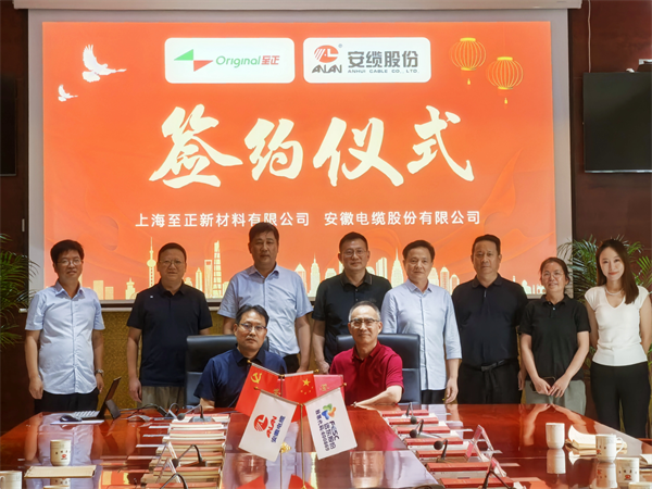 6月27日,上海至正新材料有限公司總裁侯海良、副總裁侯海峰、副總裁牛明華、副總工程師施冬梅、行政部長張靜靜、銷售經理牛詠曲率隊來訪安纜參觀交流。安纜董事、總經理朱長彪,首席技術質量官張萬有、質量服務官宰學龍、總經理辦公室資深主任張磊、技術服務官韓俊寶熱情接待并座談,雙方簽訂戰略合作協議,聚焦核級電纜領域展開深度合作。