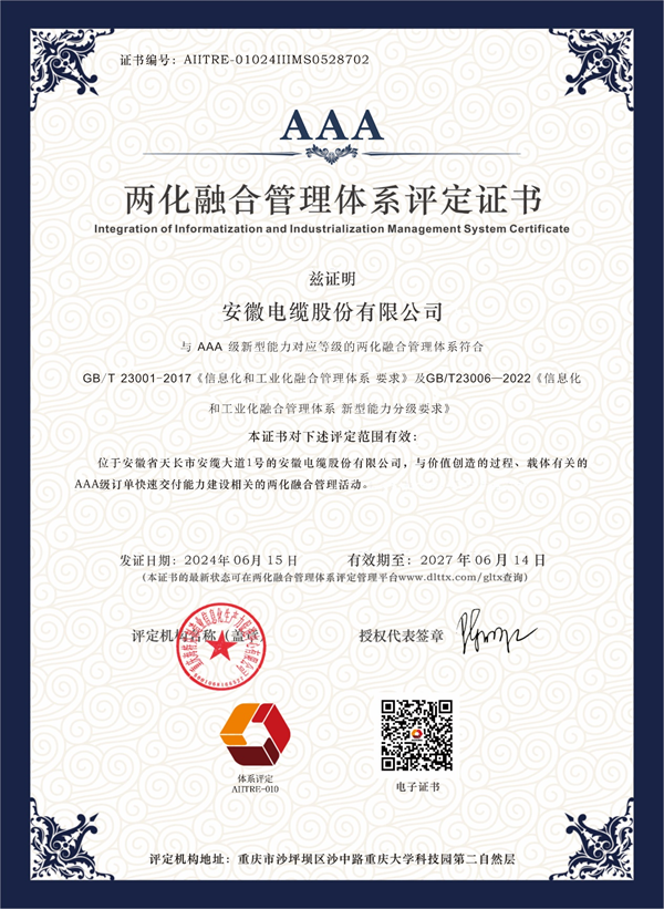 您所在的位置:首頁 > 安纜榮譽 > AAA級兩化融合管理體系認定