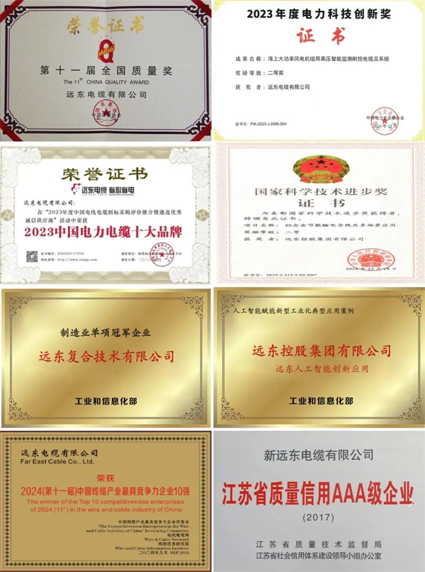 旗下子公司遠東電纜有限公司前身創建于1985年,地處長三角經濟圈中心的千年陶都宜興市,是中國綜合實力位居前列的電線電纜制造企業。先后榮獲中國電纜行業首個“全國質量獎”、江蘇省質量獎,是行業全國質量誠信企業,亞洲品牌500強、中國(行業)十大領軍品牌、連續20年行業綜合實力第一。始終堅持以及時、極致的產品和服務贏得客戶和市場。目前,已服務超100家世界500強,超300家中國500強客戶。