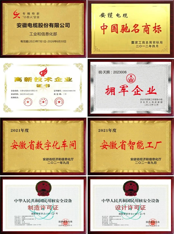 安徽電纜股份有限公司(簡稱:安纜股份)創建于1991年,先后被認定為國家高新技術企業,中國馳名商標,國家級專精特新"小巨人",工信部3A級兩化融合企業,省級數字化車間和智能工廠,省級綠色工廠和擁軍示范企業,中國核能行業協會科學技術獎和安徽省科學技術獎二等獎。安纜擁有核電和軍品線纜領域最高等級資質,是安徽省唯一一家同時具備核電全系列產品資質和軍工配套的企業,"華龍一號"三代核級電纜領域標桿企業、中國特種電纜領軍企業。